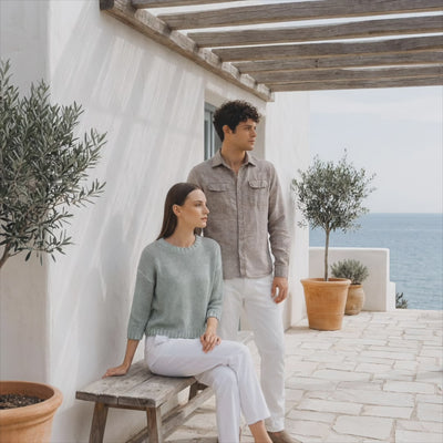 Ploumanac’h collections are developed from natural fibers such as cashmere, merino wool, viscose, linen, and cotton. The brand’s signature dyeing processes, including Soffio, Spray, and Rainbow, create subtle variations in tone and depth of each style, defining a distinctive aesthetic rooted in Italian know-how.