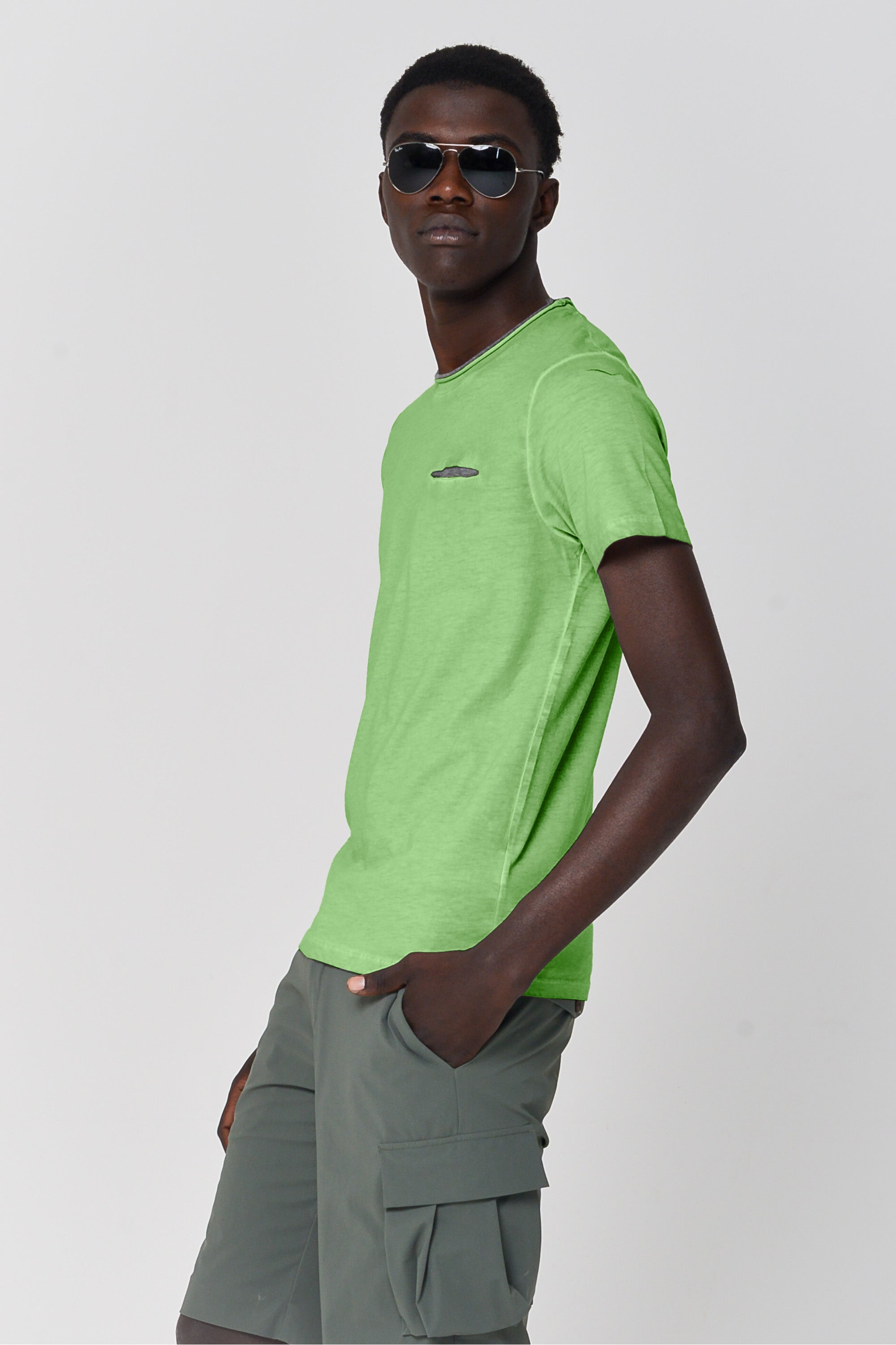 Questa T-shirt, con scollo rotondo a taglio vivo e taschino interno sul petto con bordo a contrasto è la scelta perfetta per le assolate giornate estive.