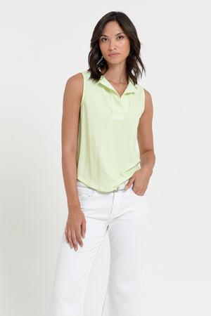 Polo smanicata slim fit realizzata in cotone Piquè con collo a revere e dettaglio colletto in popeline. Colorato utilizzando la tecnica Rainbow per un effetto vibrante e invecchiato con dettagli leggermente intatti.