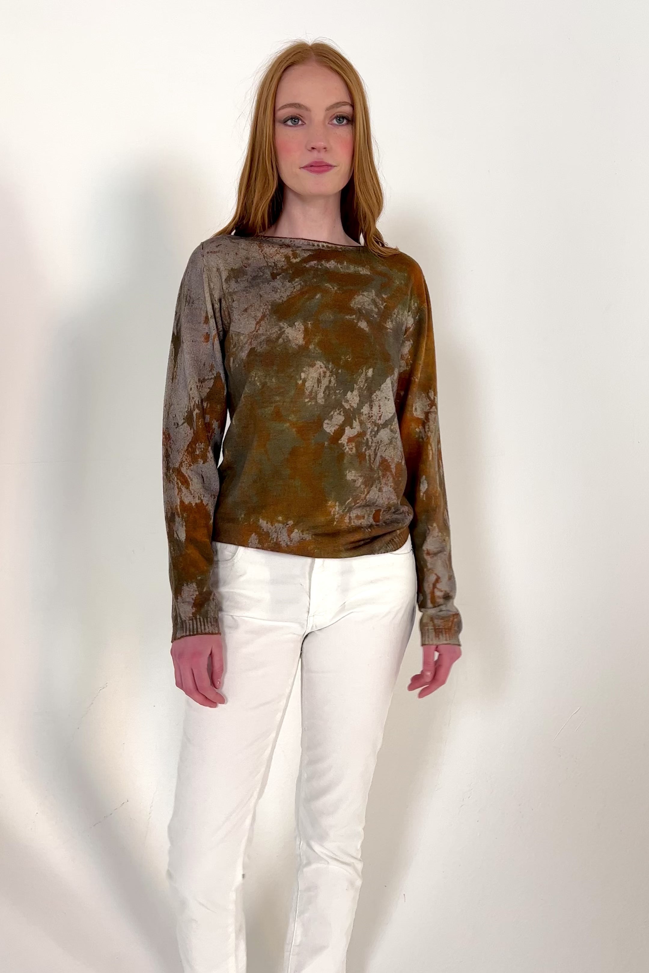 Questo maglione slim fit è realizzato in lana merino extra fine e presenta vestibilità comoda e mano morbidissima. Ha girocollo e maniche lunghe, ed è realizzato con filato finezza 12. La tecnica dipinta a mano aggiunge un tocco di unicità, unendo fino a tre diversi pigmenti eterogenei sulla maglia finita.