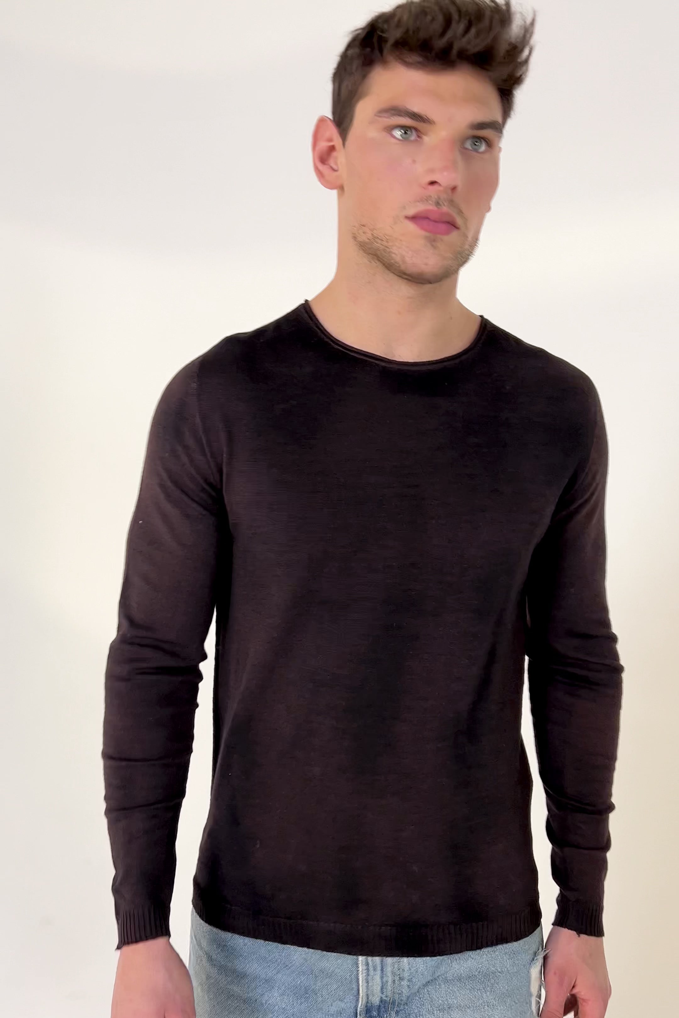 This ultra-light merino sweater features three-dimensional ribs on the shoulders and a rolled neckline. Finished with a contrasting color airbrush touch, this light sweater design is a perfect companion for any season.